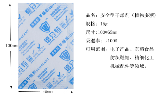 安全型干燥剂外观为浅淡黄色细小颗粒,是以天然植物多糖为主要原料制成的,具有优良的吸湿保水性能。