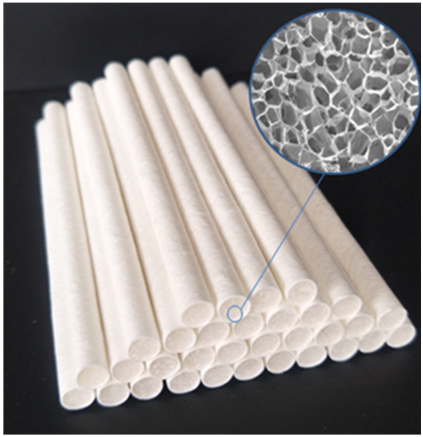 本产品采用植物多糖-魔芋葡甘聚糖为核心材料,辅以天然生物质通过溶胶-凝胶、真空冷冻干燥的方法一次成型制备而得,可用于HNB电子烟烟弹的过滤段、降温段和发烟段部件。